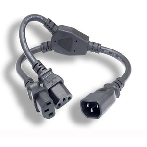 This C14 to C13 16AWG Power Cord Extension Splitter is perfect for distributing power to two devices; providing necessary voltage levels with its C14 to C13 x 2 connections. This splitter is ideal for compact workplaces and home offices where space is limited and suitable for many devices, including monitors, computers, printers, scanners, TVs, and sound systems.