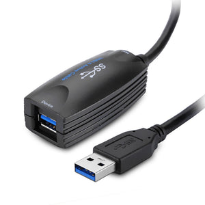 Our 16Ft (5 Meters) USB 3.0 USB-A Male to USB-A Female Active Extension Cable very convenient when you use devices which have USB 3.0 port especially for long distance. The USB 3.0 Repeater Cable is an active device that buffers the data going in and out to assure that the signal always meets the USB electrical and timing specification. The cable can be used to extend the cable length of any USB 3.0 / 2.0 device. The USB data extension cable acts as a transparent USB hub, and buffers all upstream and down-stream data traffic. Both low speed and high speed devices can be accommodated.