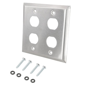The 4-Port Industrial Single Gang Stainless Steel Wallplate with Water Seal is engineered for robust protection in demanding environments. Constructed from durable stainless steel, it resists corrosion and physical impact, ensuring long-term reliability and designed to fit a bulkhead RJ45 connector, this steel wallplate has a water tight seal along with a stainless steel mounting screw and O ring. The integrated water seal safeguards connections from moisture intrusion, maintaining system integrity in wet or harsh conditions. Ideal for industrial and outdoor installations, this wallplate combines strength and protection to support critical network or power infrastructure with confidence and durability.
