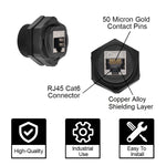 CAT6A RJ45 Shielded Industrial Panel-Mount Bulkhead Coupler - TAA Compliant - Made In Taiwan. Our CAT6A RJ45 Shielded Industrial Panel-Mount Bulkhead Coupler industrial outdoor solution is ideal for harsh industrial...