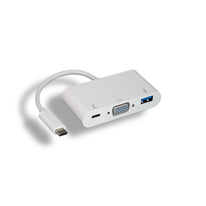 USB-C 3.1 to VGA+USB3.0 Multiport Adapter with Power Delivery up to 60W White. This USB-C 3.1 multiport adapter combines USB 3.0, VGA, and USB-C charging ports into one efficient device....